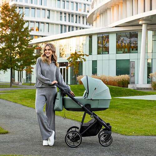 Նորածնային զամբյուղը Իննովատիվ մեխանիզմներով հեշտությամբ ծալվում է, ամրանում ռամայի վրա և նույն կերպ հեշտ էլ հանվում։ Ներքին ծածկերը վերամշակված բամբակից են։ Ներքնակը երկկողմանի է՝ կոկոսի քերուկ մի կողմից, և Անատոմիկ կառուցվածքով սպունգ մյուս կողմից։ Հովանոցը կարգավորվող է, ինչպես նաև ունի հատուկ պատուհան փոքրիկի համար։