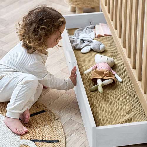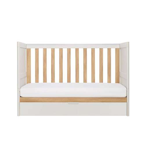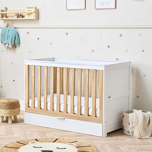 Tutti Bambini Մանկական մահճակալ․ Riley Mini Cot Bed with Drawer – White & Maple Oak